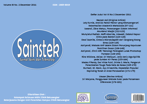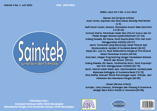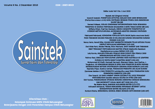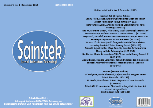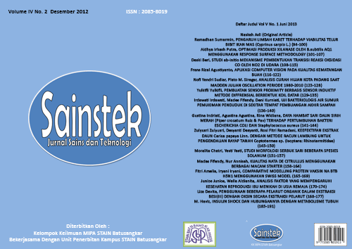 Sainstek: Jurnal Sains dan Teknologi contains the scientific manuscripts of research results in mathematics, biology, chemistry, and physics as well as their applications. Manuscripts can be in the form of review articles.