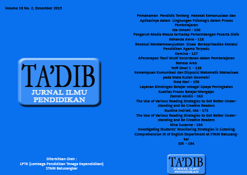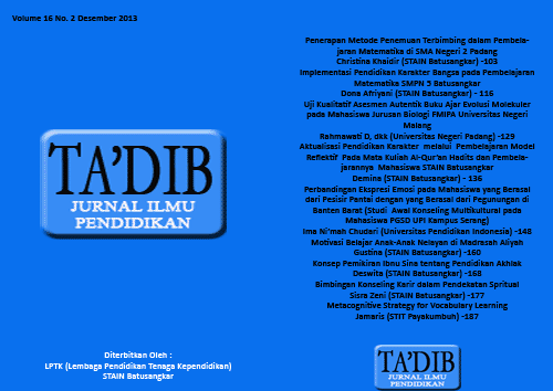 Ta'dib covers research-based articles in the field of education. This issue has been available since 28th December 2013 for the regular issue of December 2013.