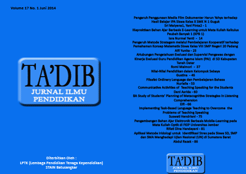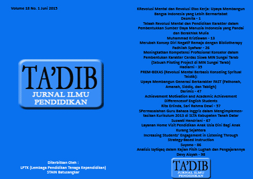 Ta'dib covers research-based articles in the field of education. This issue has been available online since 17th June 2015 for the regular issue of June 2015. -